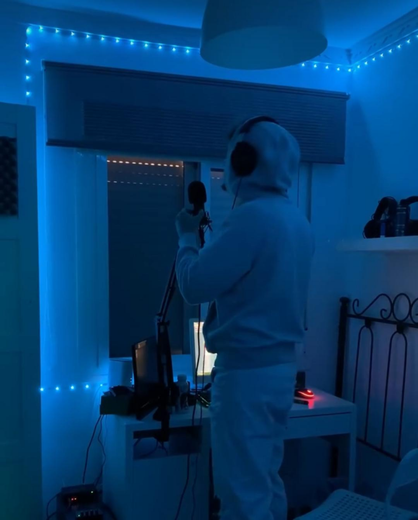 Obviamente, como objetivo, pues como diría todo artista emergente que se lo toma profesional y quiere ver su futuro en eso. Pero ya no te digo pegarme, meterme en el mundo del famoseo como puede estar Bad Bunny o Quevedo, pero no sé, llegar… Ahora mismo, digamos un objetivo marcado, cantar en el Riverland, por ejemplo, ¿sabes? Aunque sea de rookie ir al Riverland, ya más o menos meterme un poquillo en el mundillo más underground. Y sobre todo, yo siempre lo he dicho, a mi familia y a mis amigos cercanos, quitarle el trabajo a mis padres y yo qué sé, poder hacer el mundo de alrededor un poco más sencillo y más bonito.