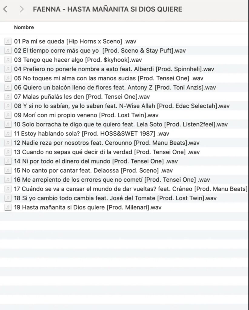Dentro de las colaboraciones hemos comentado la de Delaossa. Aunque nos encanta poder ver la faceta más melódica de la rapera, la canción supone más de lo que se ve a simple vista. Es un símbolo de estatus que refuerza la nueva posición de la malagueña. Aunque la colaboración más destacada musicalmente podría tratarse de Prefiero no ponerle nombre a esto, con Alberdi y Spinnheli, un R&B que es un completo flechazo auditivo digno del mes del amor.
