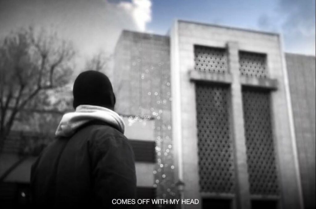 El primero, BUITRES, a campo abierto y con elementos simples como pájaros, el tendido eléctrico, y el único color en escena es el de la corbata amarilla. Personalmente la localización de este clip me ha recordado a la película Divergente. A pesar de ser un espacio abierto lo que transmite es aislamiento, hay una quietud incomoda apoyada por la ausencia de color. En la película el lugar no parece peligroso a simple vista, pero emocionalmente sí.