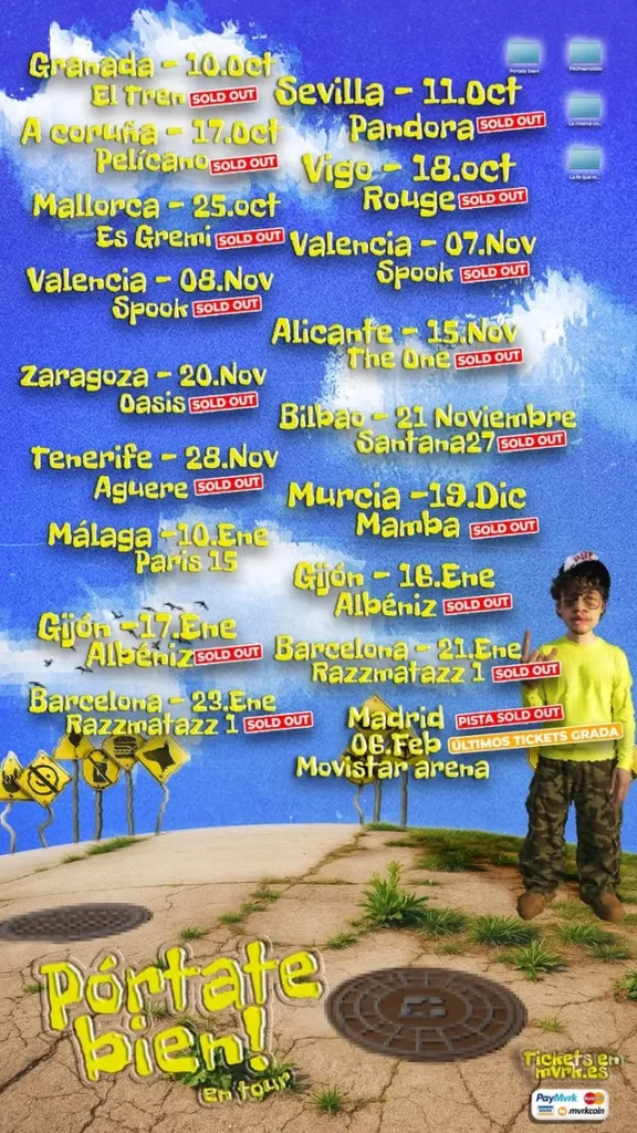 En directo, todo apunta a que este universo cobrará una nueva dimensión. Tras una gira que ya ha colgado el cartel de sold out en múltiples ciudades, la parada en Málaga se presenta como una oportunidad para comprobar cómo conviven en la sala los temas más introspectivos con los momentos de puro desahogo colectivo: neobaladas, palos y audios virales transformados en himnos coreables.