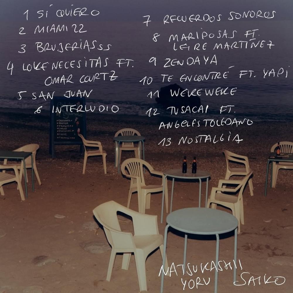 Dentro de Natsukashii Yoru seguro que hay una canción para ti. Desde la tristeza y el romanticismo de SÍ QUIERO, RECUERDOS SONOROS, MARIPOSAS, TUSACAI y MIAMI 22 hasta las melodías y los ritmos de WEKEWEKE, LOKENECESITAS, SAN JUAN, TE ENCONTRÉ y BRUJERIASss.
