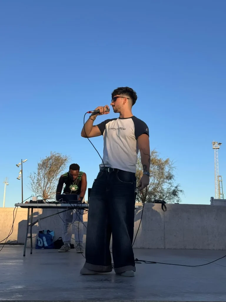 Te diría que Bon Calso. Musicalmente, líricamente y sobre todo como está evolucionando y la forma en la que está llevando los conciertos es el mejor ahora mismo. Mvrk y D.Valentino también por su puesta en escena y cómo llevan su estética, y por decirte otro, me ha influenciado muchísimo siempre, aunque quizás no lo parezca tanto, porque en letras y en estilo musical no nos parecemos mucho, pero Mda.
