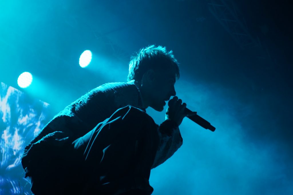El argentino entró cantando Curita </3, el tema que abre su último proyecto de Secretos Escondidos. Los visuales del directo estuvieron muy bien trabajados a pesar de que solo dispusiera de una única pantalla para mostrarlos. Contaban con fragmentos de videoclips, pero también con escenas inéditas que no pertenecen a ninguna canción como algunos vídeos que mostraban el estudio que aparece en la portada de su último disco. También veíamos diversos efectos en dicha pantalla y las luces del escenario acompañaban a cada sonido con constantes cambios de tonalidad.