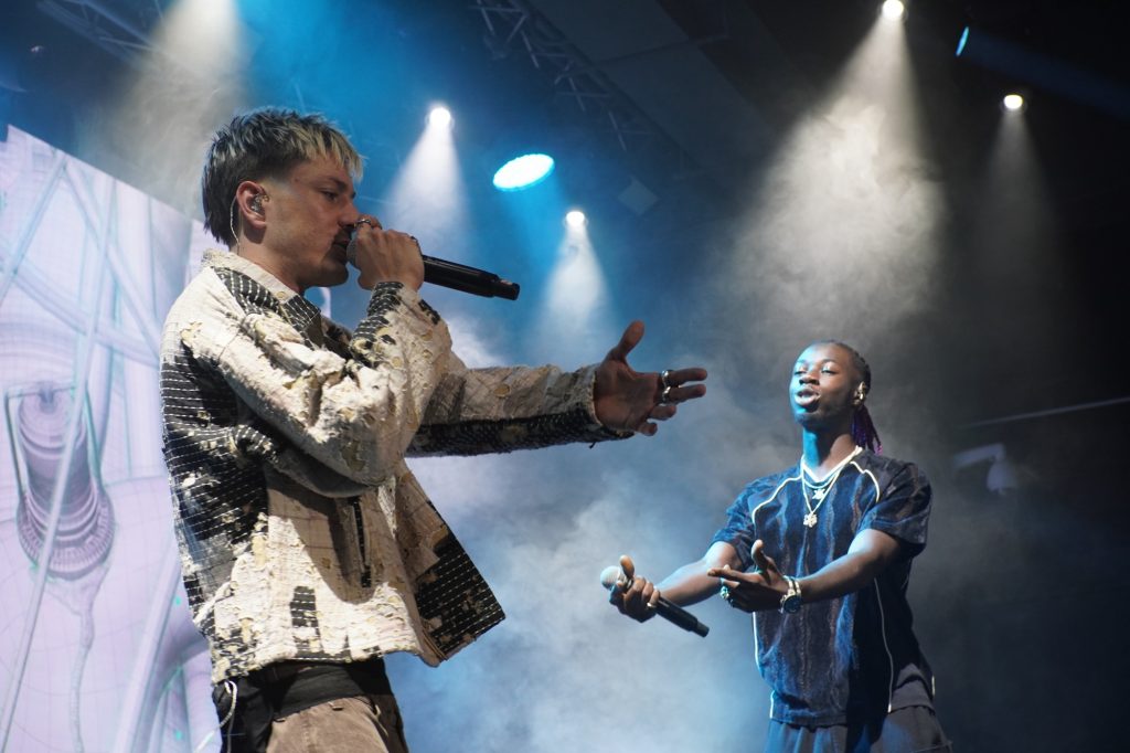 Durante el show no faltaron los invitados. El primero de ellos en aparecer fue Munic HB, con quien estrenó una canción en el último proyecto bajo el nombre de Slowww y pudimos ver en vivo por primera vez. Más adelante también salió Xavibo para cantar No sé si tú, y en el tramo final de la noche vimos a Aleesha en Ke Sientes. Es lógico que al ser artistas españoles el público conociera los tracks, y funcionó de manera que estuvieron dejándose el alma en todos ellos. Antes de llegar a las últimas canciones, Seven Kayne se dispuso a regalar la cadena anteriormente mencionada a quien tuviera el mejor disfraz. Después de entregársela a un afortunado Batman, subió al escenario a unas chicas del público que también estaban disfrazadas para cantar el mítico Tres Rosas.